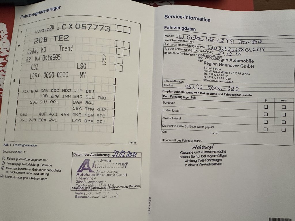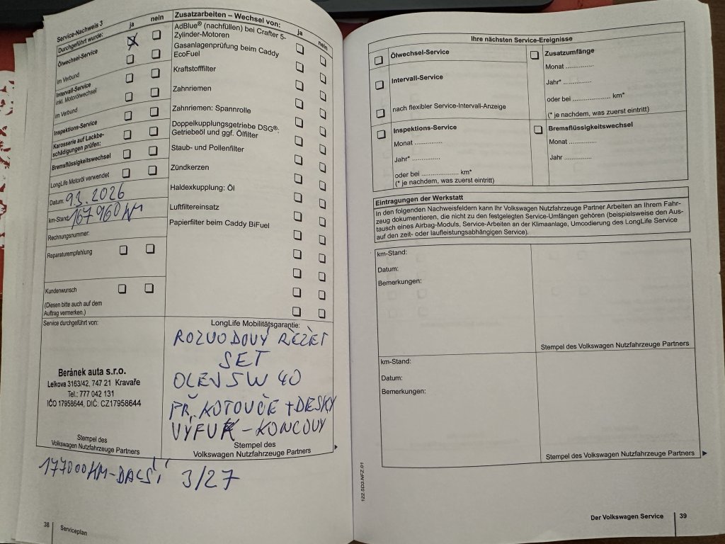 DOVOZ NĚMECKO, SERVISNÍ KNIHA, 2 KLÍČE